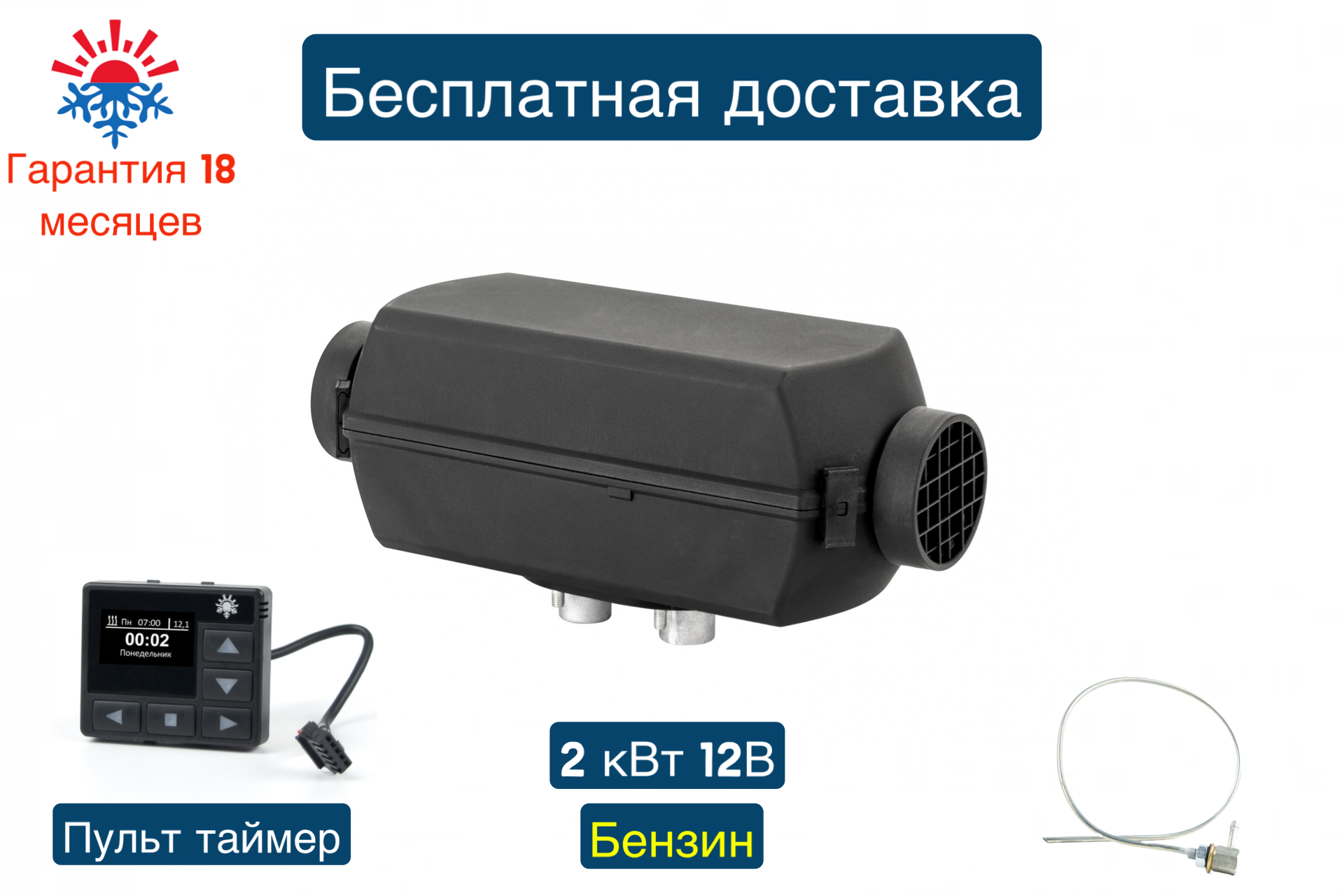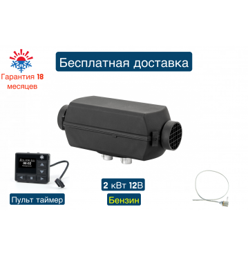 Отопитель воздушный бензиновый 2Б-12В-S (2 киловатта) Монтажный комплект с топливозаборником, Электронный пульт таймер